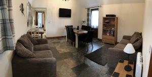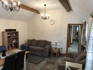 Large open living/dining area with a 2 comfortable sofas and dining table. Large wall mounted flat screen TV, DAB radio with CD player and iPod dock. WIFI